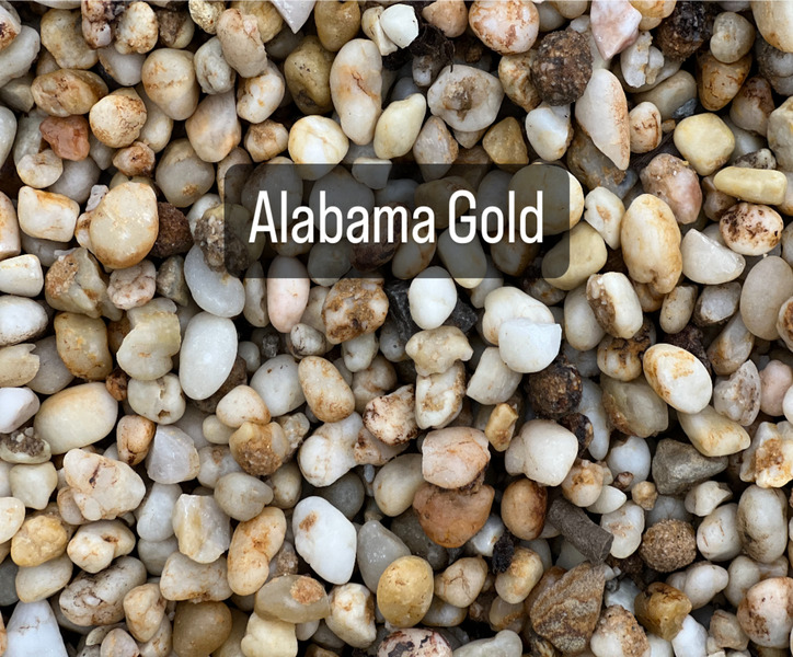Alabama Gold is a stunning, high-end decorative aggregate known for its warm, sun-drenched palette of gold, tan, and soft amber hues. These naturally rounded or sub-angular stones offer a distinct, Mediterranean-inspired aesthetic that brings a bright, cheerful energy to any property. Unlike limestone or granite which can feel cool and industrial, Alabama Gold provides a rich, earthy glow that intensifies beautifully when wet. Because it is a natural stone product, the colors are permanent and will not fade over time, providing a durable, low-maintenance ground cover that suppresses weeds and retains soil moisture far more effectively than organic mulches.